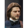 - Headsculpt with realistic hair - HG Slim Short body (version) - Caucasian male hands - Caucasian male hands - Bow tie (Black) - Hip / butt padding (White) - U.S. cavalry trousers “sky blue” with yellow cavalry stripe (Blue) - Officer’s frock coat (dark navy blue) with metal buttons (Navy) - Cavalry officer waistcoat / vest (Blue) - Cavalry / officer leather boots (Black) - Metal spurs (Gold) - Colt Single Action Army / “Peacemaker” style revolver (western style) (Black) - Brown leather shoulder holster for revolver with straps (Brown) - Genuine leather Colt 1851 holster (Black) - Pocket flask (Brown) - Cavalry saber (M1860 Light Cavalry Saber type) + metal scabbard - Split-toe tabi socks (Black) - High-collar shirt with puffed sleeves (White) - Genuine leather cartridge pouch / ammo pouch (Black) - Colt 1851 metal cartridges set (Gold) - Wooden katana - Waraji sandals - Hakama (pleated Japanese trousers / skirt-pants), striped fabric with himo ties - Kimono - Leather cartridge belt with cartridge loops and suspension straps / scabbard frog, U.S. Cavalry belt buckle - Haori / kimono jacket with grey inner collar (juban-style) (Burgundy) - Obi / kimono belt (kaku-obi) (Blue) - Koshi-himo (kimono tie cord) (Grey) - Illustrated backdrop for forest-at-dusk diorama (Blue)